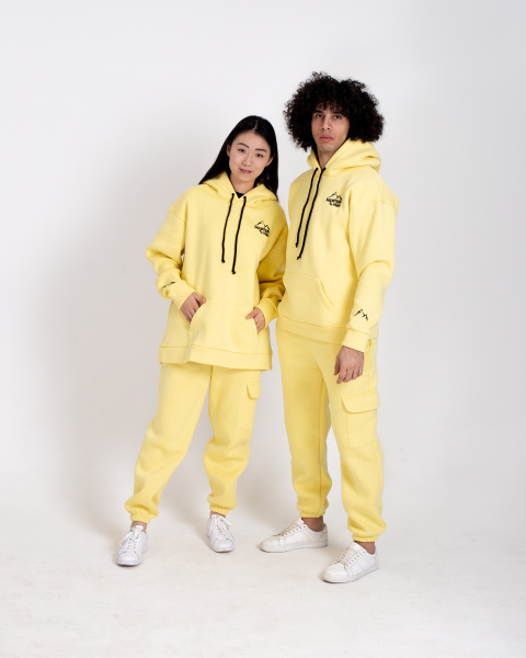 Универсальный фасон и свободный крой делают модель подходящей как для женщин, так и для мужчин. Комплект состоит из худи с капюшоном и джоггеров. Яркий лимонный оттенок Limoncello привлекает внимание и отлично сочетается с базовой одеждой.