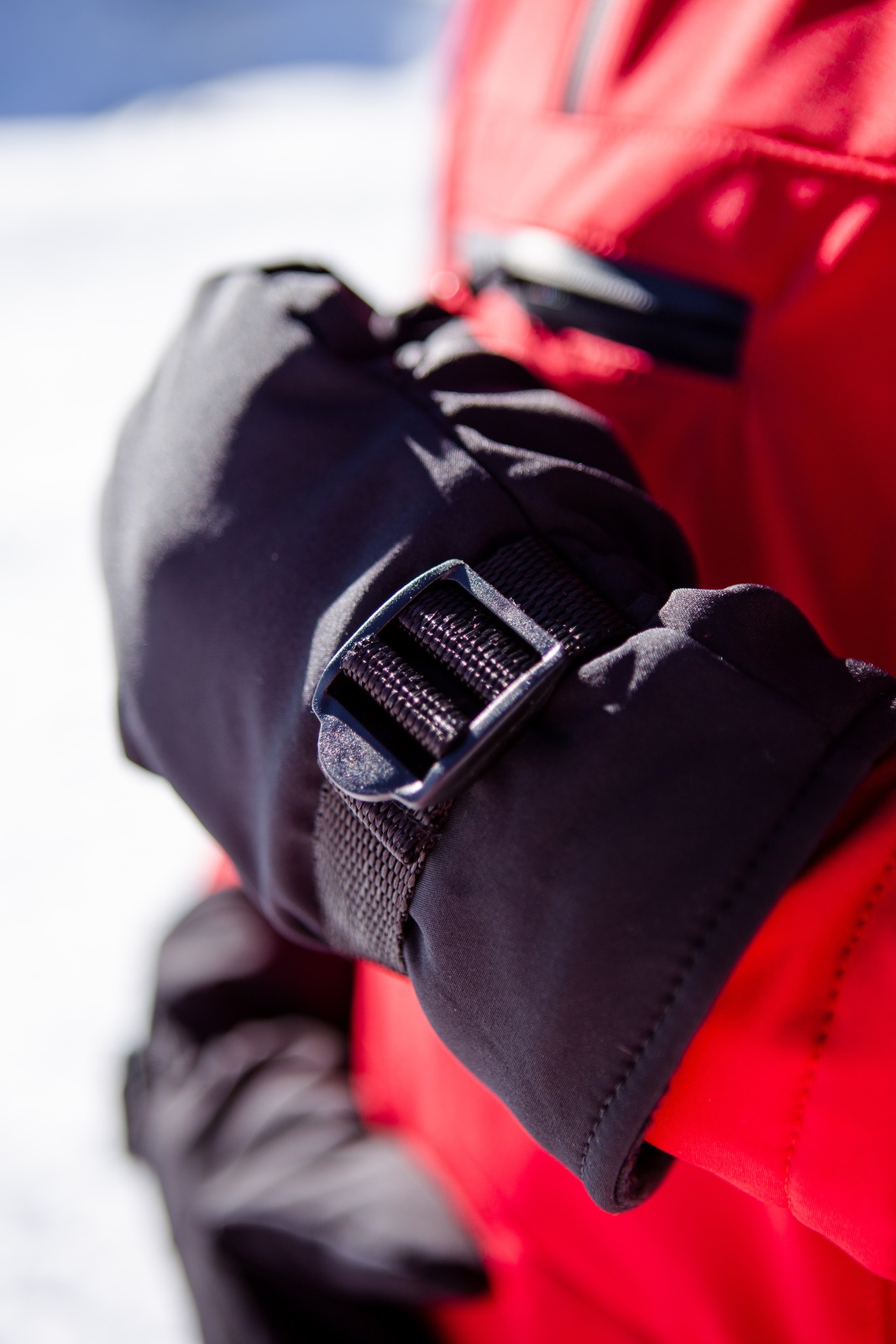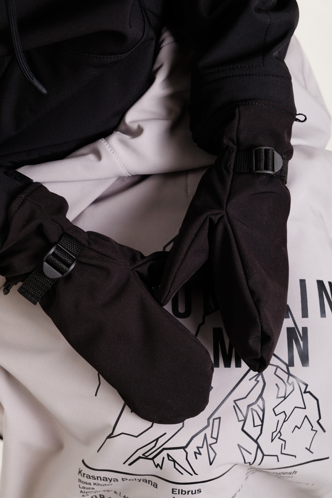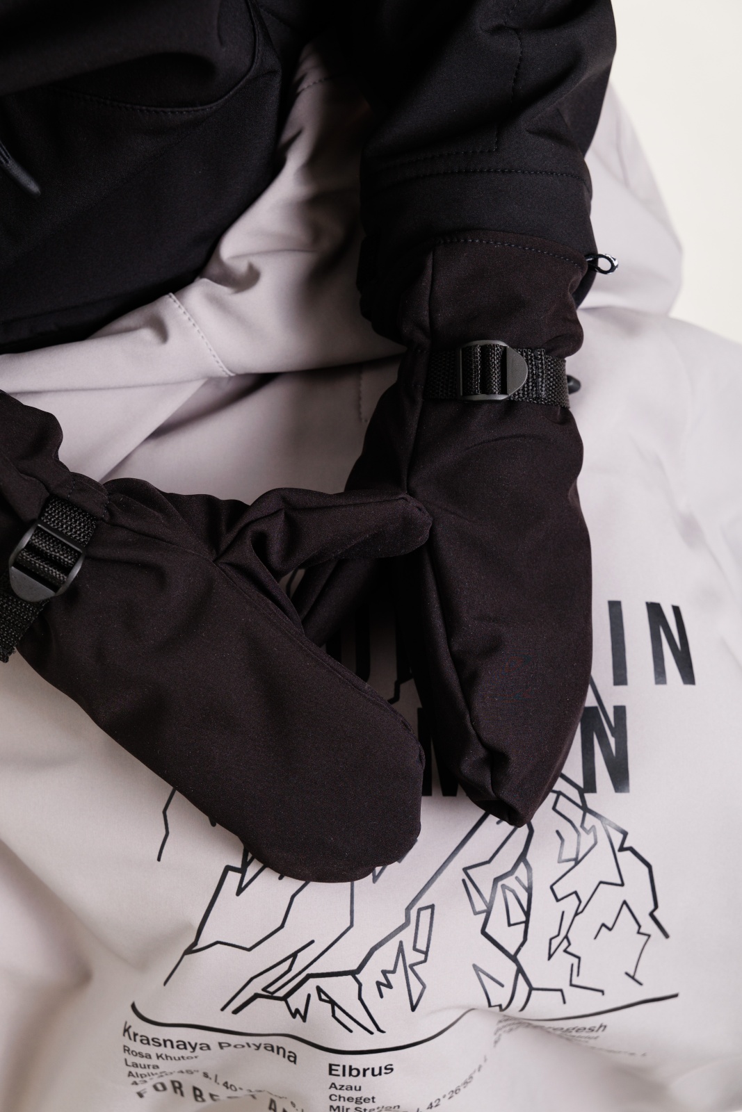 • Резинка и стропа на запястье: препятствуют попаданию снега внутрь варежек, обеспечивая дополнительную защиту.