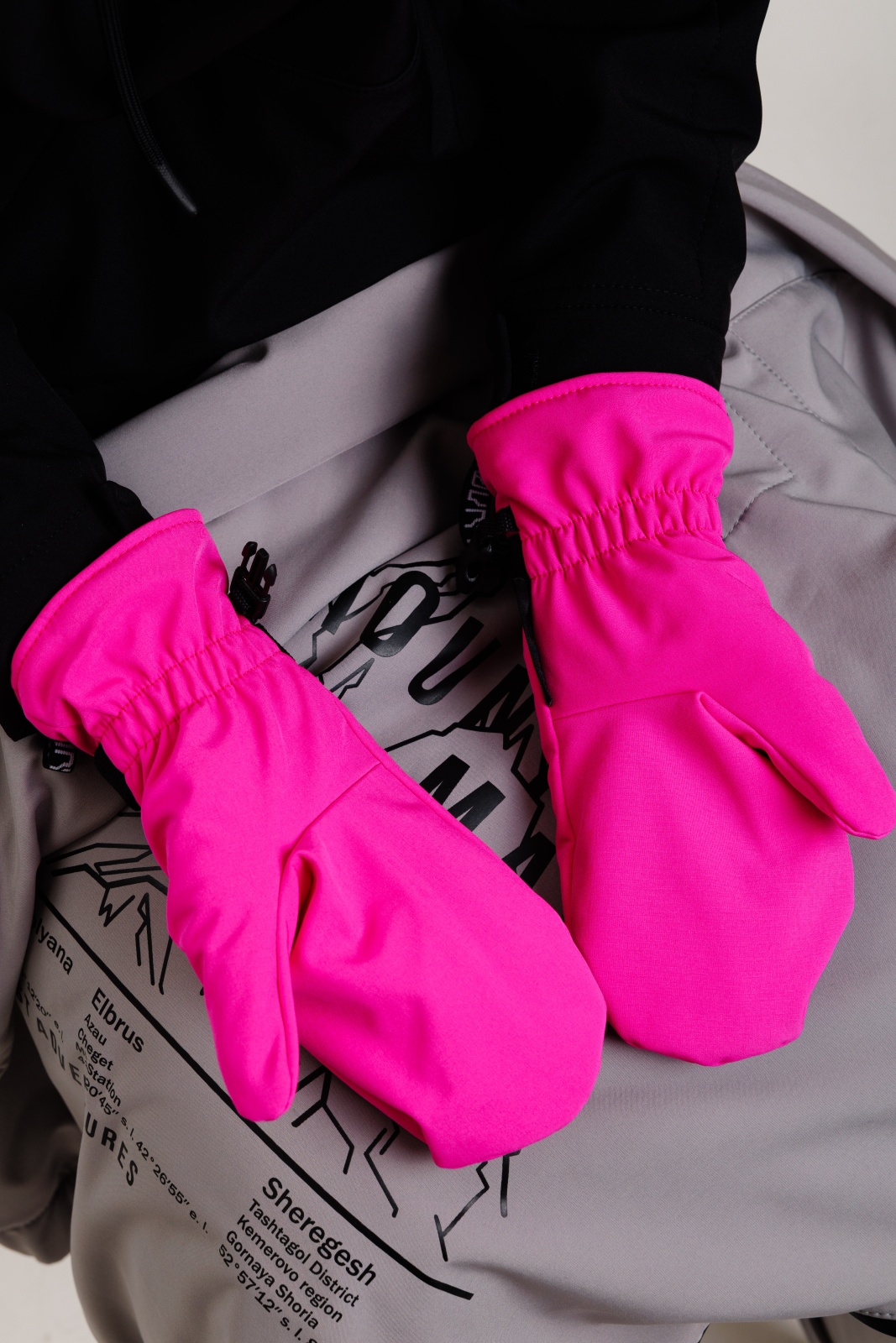 • Резинка и стропа на запястье: препятствуют попаданию снега внутрь варежек, обеспечивая дополнительную защиту.